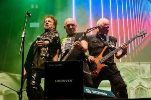 La banda sonó realmente bien, comandada por un Fernando que fue posiblemente el que más hizo que se notara la diferencia entre ver a los Obus actuales o los originales, con una pegada y unos breaks muy melódicos y con mucha personalidad, ¡puro sonido Obús clásico! Hacía mucha ilusión ver a Jose Luis encima de un escenario después de ver todos los problemas de salud que ha tenido en los últimos años, aunque fue una pena que su bajo no se escuchara demasiado en el centro de la pista, que quizás fue el único «pero» al sonido. Paco sonó espectacular como en los últimos años, con el sonido actualizado que nos tiene acostumbrado, aunque sí es verdad que pensé lo bien que quedaría una segunda guitarra, sobre todo en los solos de Paco, pero eso es algo que a éstas alturas no va a suceder.
