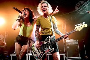 Se anunciaba la noche como una sesión de punk rock rápido y agresivo, y así fue como arrancaron las chicas de THE BRASSIERES, una banda asturiana con una misión reivindicativa muy clara: darle voz (y grito) al mensaje feminista más sincero, descarnado y sin tapujos. Cinco mujeres (dos cantantes solistas sin instrumentos, repartiéndose las letras de las canciones y haciendo dúos potentes) de distintos estilos, representando la variedad femenina de nuestro país y peleando por los derechos que todas deberíamos tener sin necesidad de reclamar. Basta con ver los títulos de sus canciones para hacerse una idea. Con mucha actitud y agresividad, y con sonidos muy punkies, en unos 25 minutos rapidísimos no se dejaron ninguna de nuestras preocupaciones en el tintero. Conectaron bien con el público, haciéndonos entonar algún estribillo pegadizo, y dejaron su mensaje bien claro.