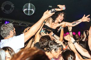 Así, con mucha confianza, no dudó en saltar al público varias veces, dejarse llevar en volandas (de hecho, no dudó en practicar el arriesgado «deporte» de crowdsurfing varias veces) hasta la barra del fondo, y dejarse llevar de nuevo para volver al escenario, que se quedaba muy vacío sin sus constantes saltos, movimientos sensuales, vibrantes, descarados, poses infinitas, y sin su potente voz áspera y expresiva.