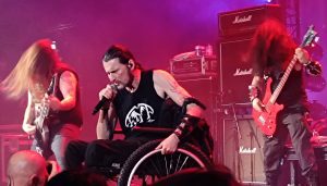 Musicalmente fue aplastante, con nada menos que cinco temas de CELTIC FROST, con “Circle of the Tyrants” casi nada más empezar, en plenitud. Sonido espectacular, la banda con un buen rollo y mucha cercanía y bromas con el público («aquí estoy, para fastidiaros las Navidades» dijo, e incluso saludando a un vecino suyo), sorprendente ya que siempre que les he visto en directo han estado de lo más distante, y Tom soso y frío.