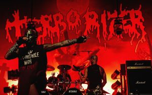 Fue un show muy americano, con esa energía extrema que les ponen a los shows (sean la banda una castaña o no), con esos locos paseos de un lado para otro del escenario de Brian completamente desatado y muy enfadado con su pie de micro lleno de cadenas. En definitiva, un no parar, una descarga del mejor Grindcore con una formación de lujo, con Evil D (Aka David Justin Vincent – MORBID ANGEL, GENITORTURES o VLTIMAS) al bajo, una máquina.