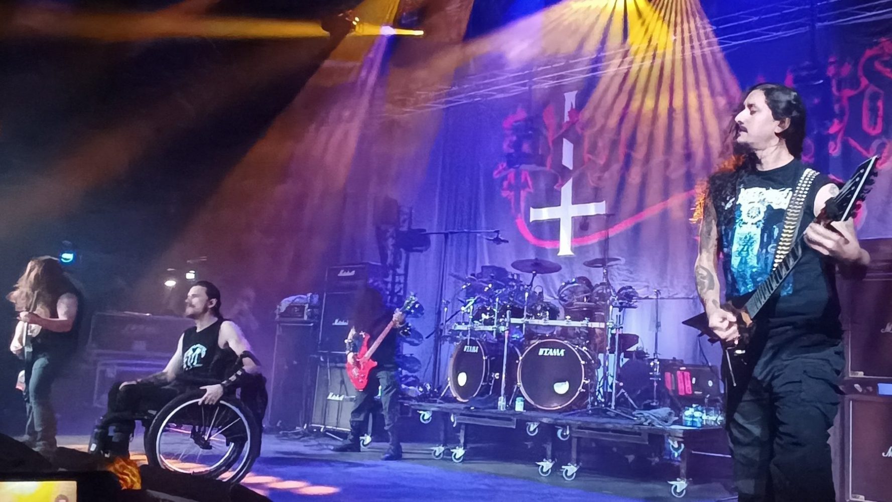 Musicalmente fue aplastante, con nada menos que cinco temas de CELTIC FROST, con “Circle of the Tyrants” casi nada más empezar, en plenitud. Sonido espectacular, la banda con un buen rollo y mucha cercanía y bromas con el público («aquí estoy, para fastidiaros las Navidades» dijo, e incluso saludando a un vecino suyo), sorprendente ya que siempre que les he visto en directo han estado de lo más distante, y Tom soso y frío.