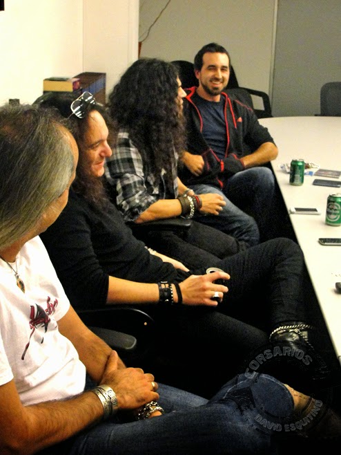 El pasado lunes tuvimos la oportunidad de reunirnos (en las oficinas de Warner en Madrid) con la banda casi al completo (sólo faltaba el batería Juan por motivos laborales) y su nuevo mánager, nuestro buen amigo David Collados (y antiguo compañero corsario), para escuchar lo que ya es su nuevo trabajo: «Swallow n´shut up??». Una de las bandas de hard/rock sleazy más prometedoras, y que ya con su debút nos dejaron impresionados, no podían defraudarnos, y de hecho antes de entrar ya sabía que iba a escuchar un discazo. Y sí, ni más ni menos que fue lo que yo y el resto de compañeros de medios (¡un saludo a todos ellos!), nos encontramos en la escucha del segundo trabajo de los madrileños: calidad, caña, macarrería, chulería pero, pese a todo, elegancia y buen gusto, muy buenas canciones y un discazo que además suena de maravilla (aunque Guille «se quejara» de que se oían demasiado altos los graves en la escucha, jeje).