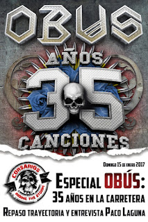 Con motivo de su concierto especial en La Riviera (Madrid) del próximo sábado, esta noche entrevistaremos a Paco Laguna. OBÚS celebran 35 años con 35 canciones en directo, invitados, y mucho más. No perderemos ocasión de repasar con Paco la historia de una de las bandas más representativas del Heavy de nuestro país y además una de las que más nos gustan ¡Esta noche en Corsarios vuelve a estallar el OBÚS!