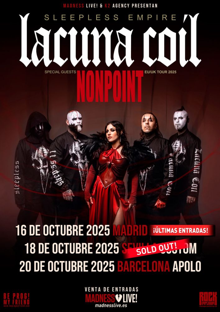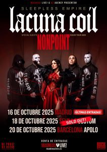 Todo ello con con tres fechas en nuestro país: Madrid, Sevilla y Barcelona. Tres noches donde podremos disfrutar de su contundencia y de la voz inconfundible de Cristina Scabbia, que nunca defrauda. Concretamente el próximo 16 de octubre de 2025 Lacuna Coil estarán en La Riviera de Madrid, el 18 en la Custom de Sevilla, y el 20 en la Apolo de Barcelona.