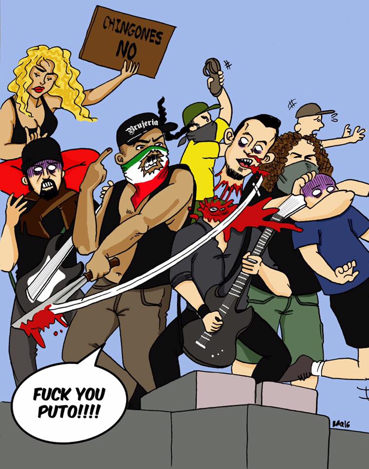 Volbeat2Nos fuimos escuchando de fondo a BRUJERIA mientras los daneses intentaban dar por finalizado su show, que empezó con 5 minutos de retraso. Pero en tan puntual festival no existe la espera y los mexicanos no estaban dispuestos a esperar que los niños bonitos del festi tuvieran más miramientos que el resto, así que por decirlo finamente les reventaron el final… (ndr.: luego nos enteraríamos por las redes sociales que tanto VOLBEAT como BRING ME THE HORIZON tuvieron un comportamiento de estrellitas en el backstage que no gustaron nada a sus compañeros ese jornada, especialmente a BRUJERIA).