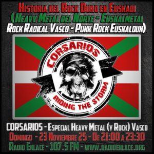 Hoy en Corsarios viajamos a Euskadi y a su música dura, hoy dedicamos el programa al Heavy Metal de allí y mucho más. Hemos visto tantos conciertos en el País Vasco, hemos metaleado tan duro a lo largo de los años y disfrutado tanto de su música y su ambiente que saldamos una deuda histórica con este programa.