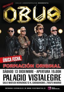 Quedan pocos días para el concierto de reunión de OBUS con su formación original (al menos la formación clásica, si nos ponemos puntillosos) que se llevará a cabo el próximo 13 de diciembre en el Palacio Vistalegre de Madrid. ¡Prepárate, que sin duda va a estallar el Obús!